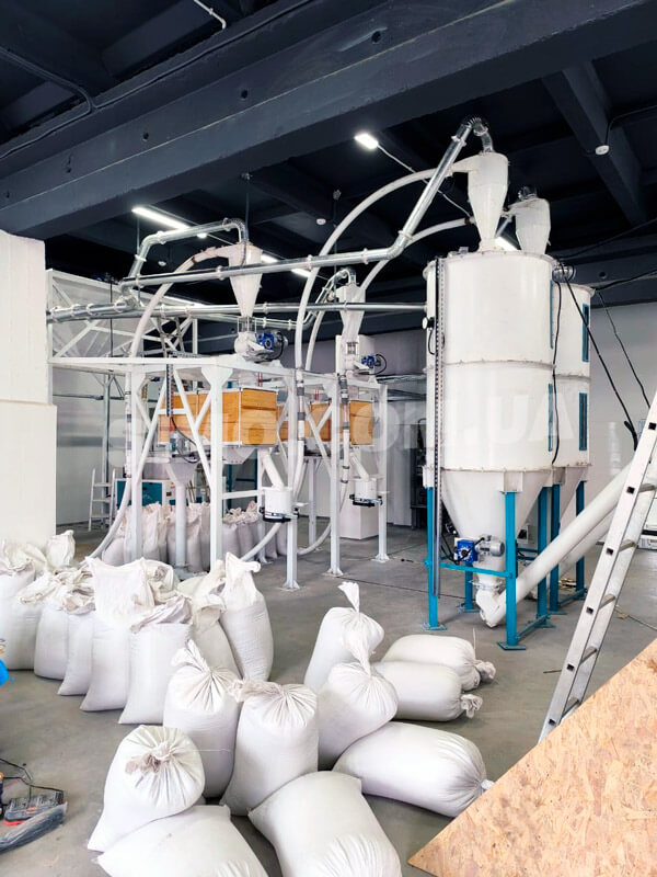 It’s so comfortable that all parts of mills are in special modular base on two floors. Therefore, you don’t need special building. It takes two persons to operating due to full automation and mechanization of grain grinding process.