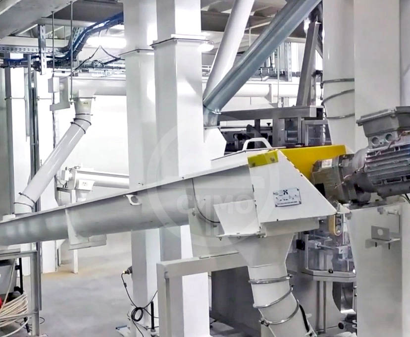 Screw conveyor KS consists of metal closed gutter and pipe which has rotating roller with blades inside. The blades are on screw line. The gutter can be made with hatches. The conveyor is completed with easy-removable tight covers of gutter. It lets the service be the most comfortable.