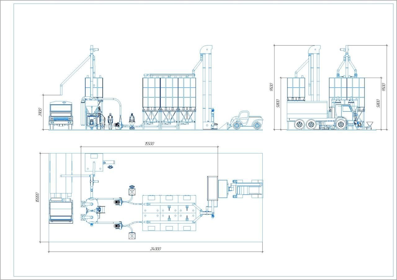 Установка предназначена для производства полнорационных рассыпных комбикормов согласно заданной рецептуре, удовлетворяющих потребности всех видов птицы, свиней и крупного рогатого скота в минеральных, питательных и биологических веществах.