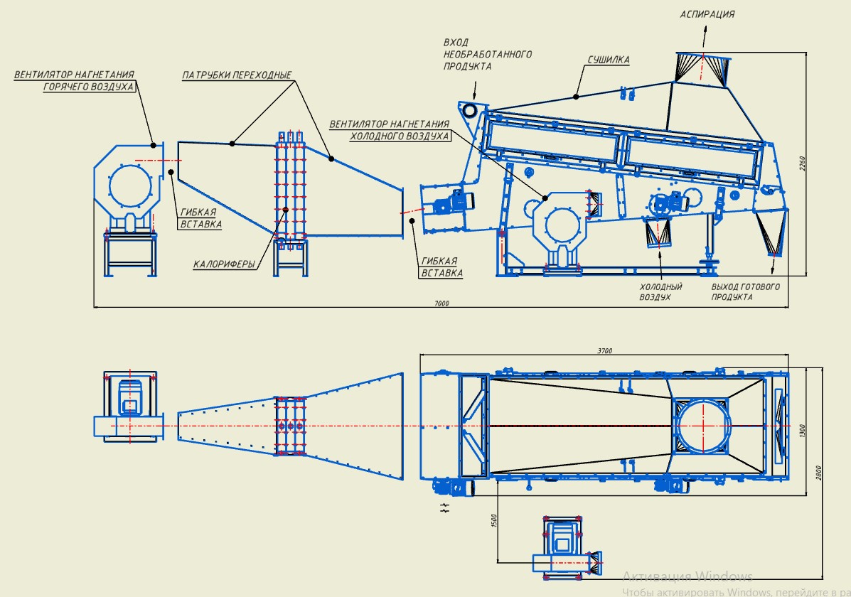 Сушилка предназначена для сушки зерновых хлопьев, полученных из разных зерновых культур методом конвективной сушки после прокатки на плющильном станке.