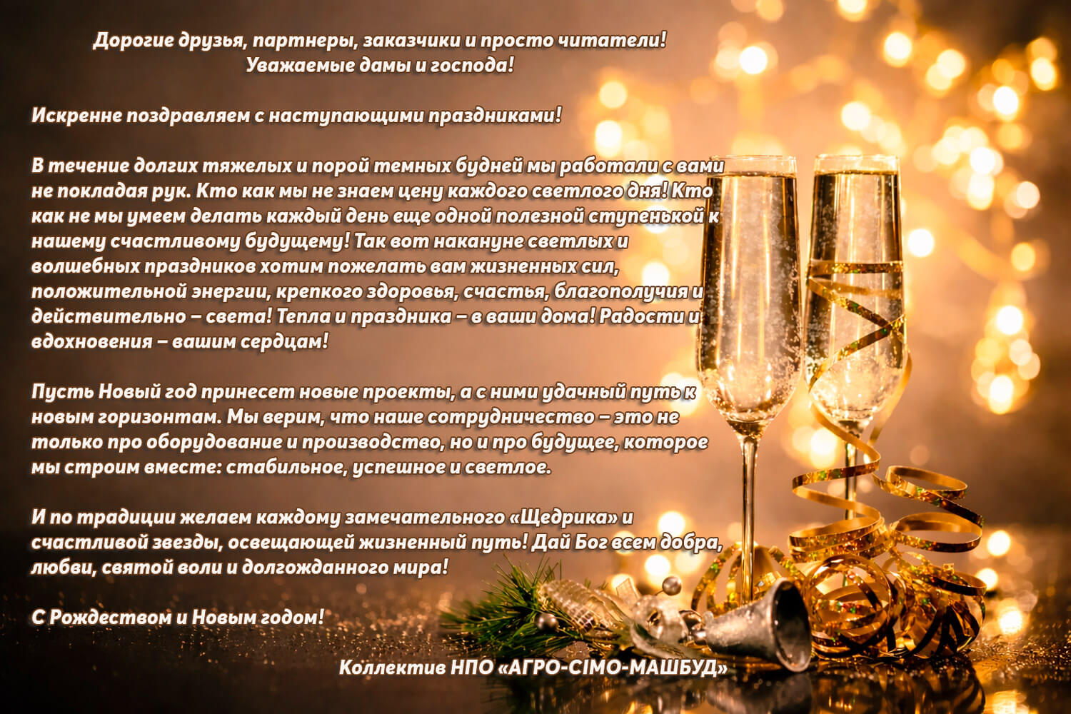 В преддверии светлых и волшебных праздников хотим пожелать вам жизненных сил, положительной энергии, крепкого здоровья, счастья, благополучия и действительно – света! Тепла и праздника – в ваши дома! Радости и вдохновения – вашим сердцам!