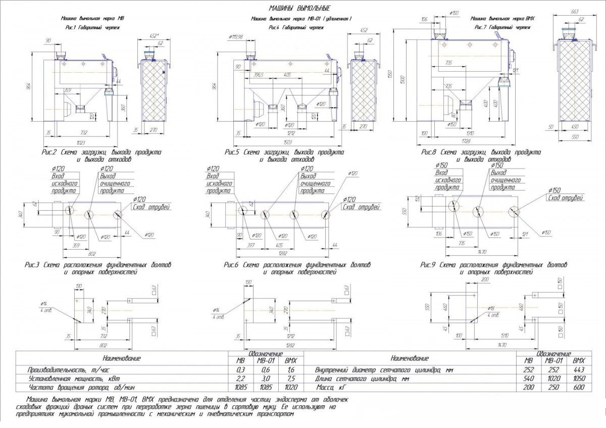 Машина вимольна марки МВ призначена для відокремлення частинок ендосперму від оболонок сходових фракцій драних систем при переробці зерна пшениці в сортове борошно. Застосовується на підприємствах борошномельної промисловості з механічним та пневматичним транспортом.